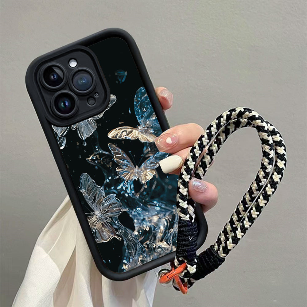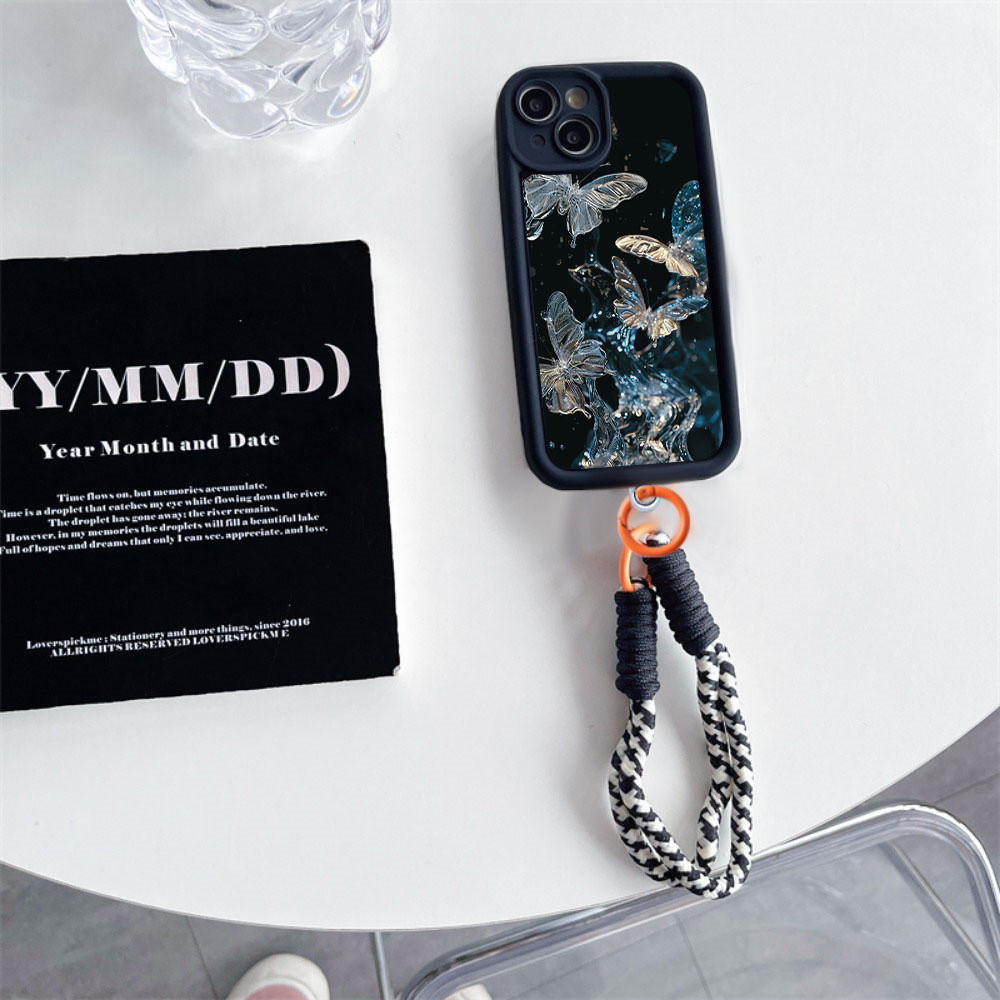 Casing hp iPhone 15 11 12 13 14 Pro/ProMax XR iPhone 7/8 Plus 8 7 6 6S XS XSMax Blue Butterfly Black Butterfly Bracelet style ahzdfe19g4
