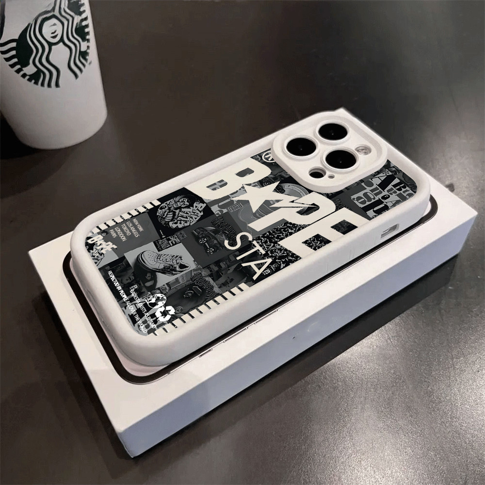 Casing hp iPhone 15 14 Pro Max 13 12 11Pro XR iPhone7 8 Plus 8 6 6S XS XSMax SE 2020 English Tags Retro Ape Head Brand Soft Case GEM