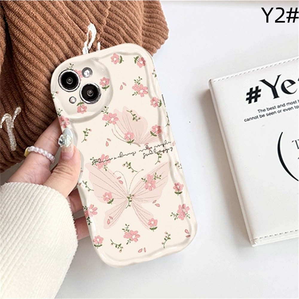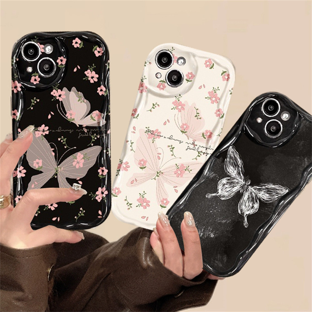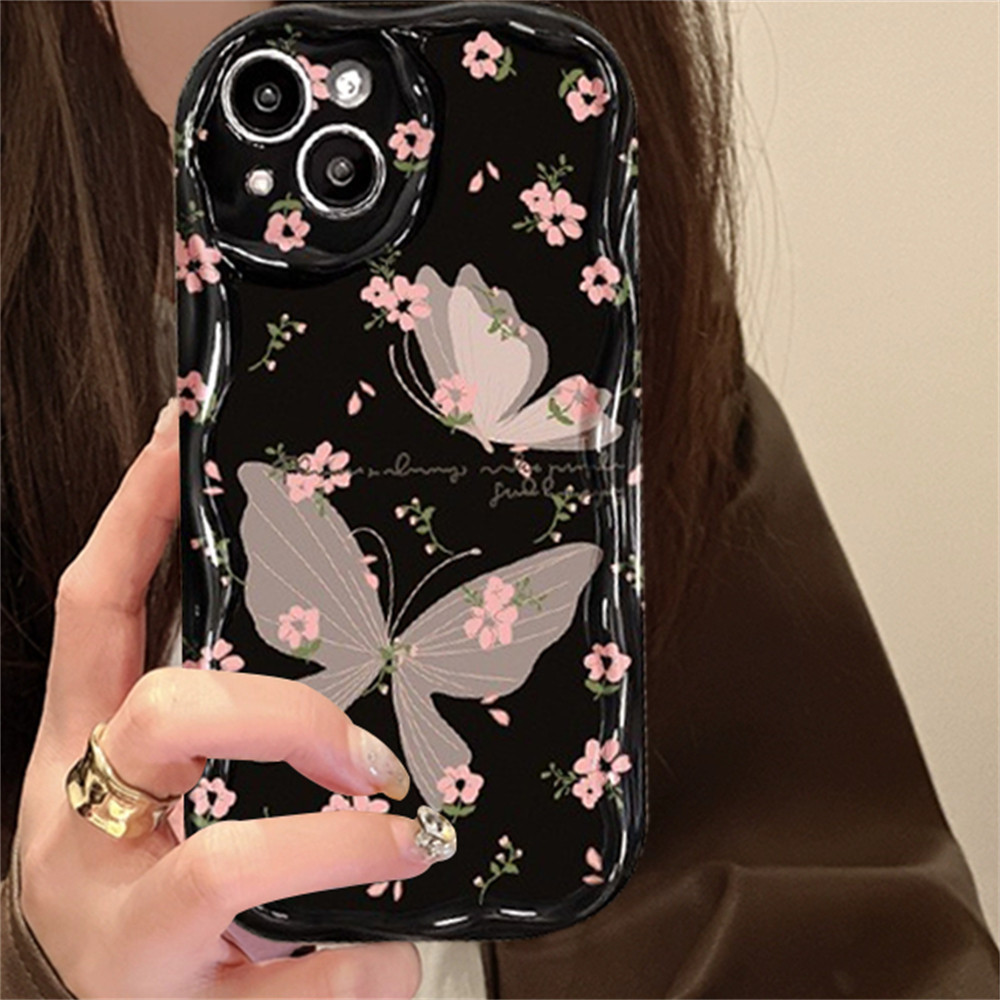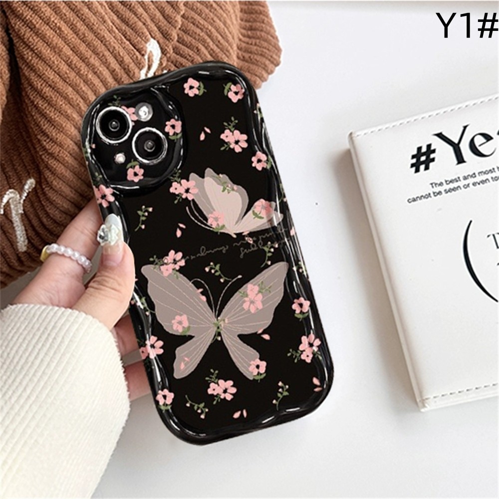 Casing hp iPhone 15 Pro Max iPhone 11 12 14 13 Pro Max XR 7Plus X XS Max 6s 7 8 6 Plus SE 2020 Butterflies in Broken Flowers 3D Soft Wave Edge TPU Phone Case Cover SUNSHINE