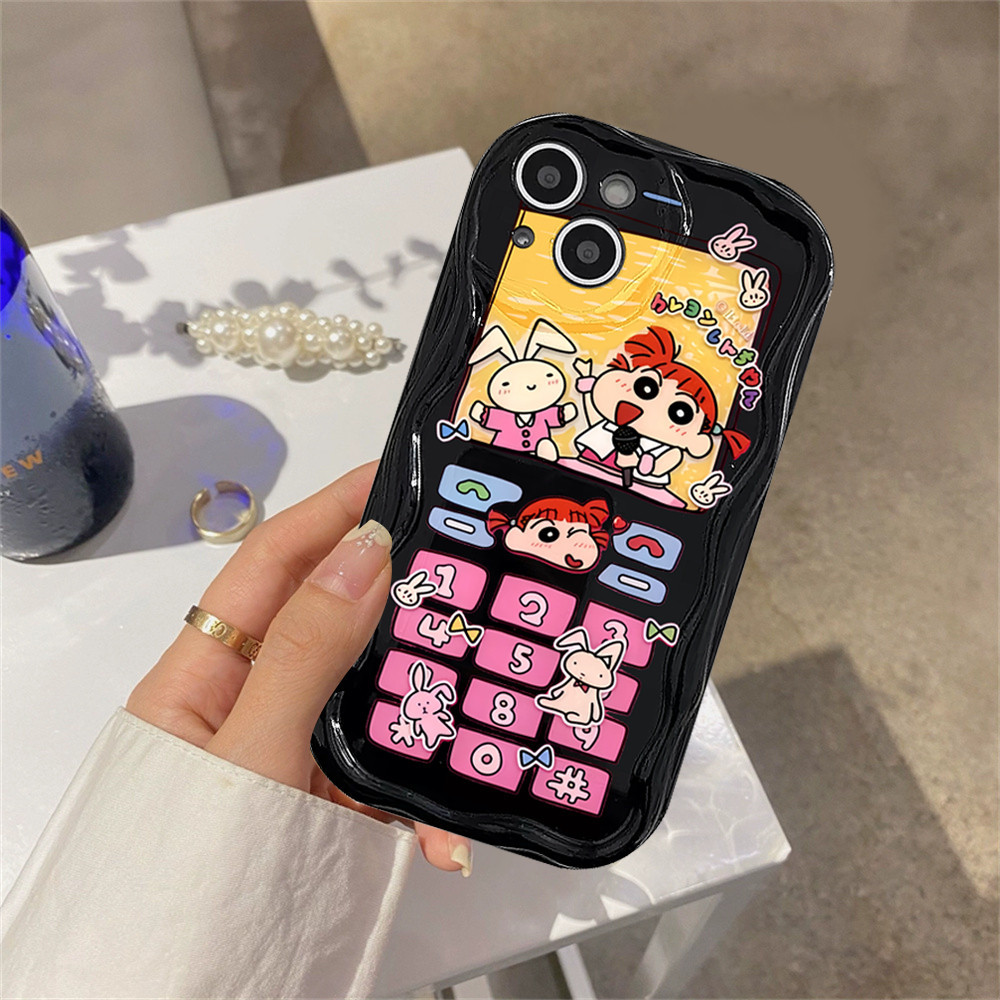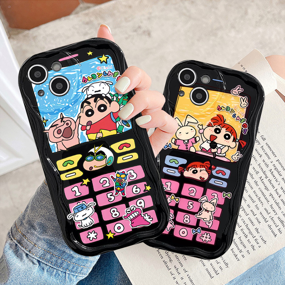Casing hp iPhone 15 Pro Max iPhone 11 12 14 13 Pro Max XR 7Plus X XS Max 6s 7 8 6 Plus SE 2020 Button Crayon Shinchan 3D Soft Wave Edge TPU Phone Case Cover SUNSHINE