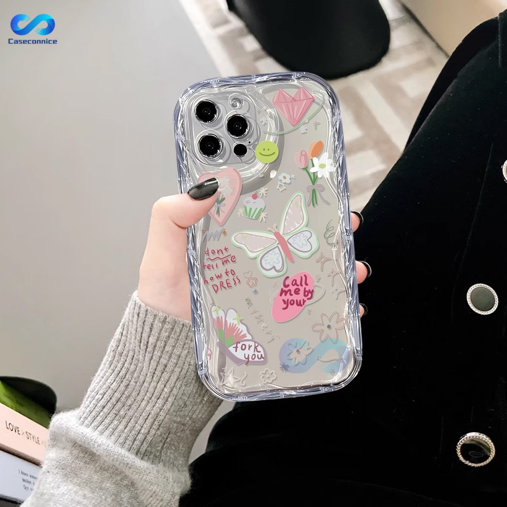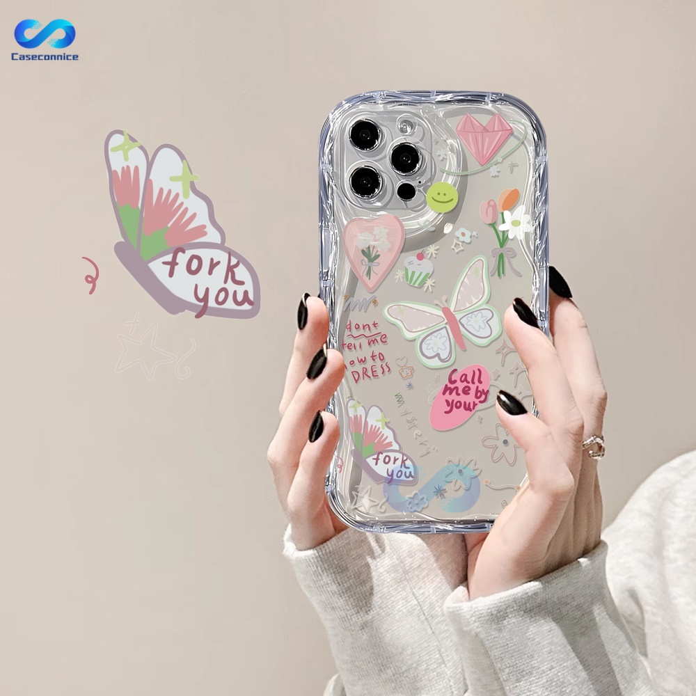 Casing hp iPhone 15 Pro Max iPhone 11 12 14 13 Pro Max XR 7Plus X XS Max 6s 7 8 6 Plus SE 2020 Cartoon Bear and Butterfly 3D Soft Wave Edge TPU Phone Case Cover CONNICE