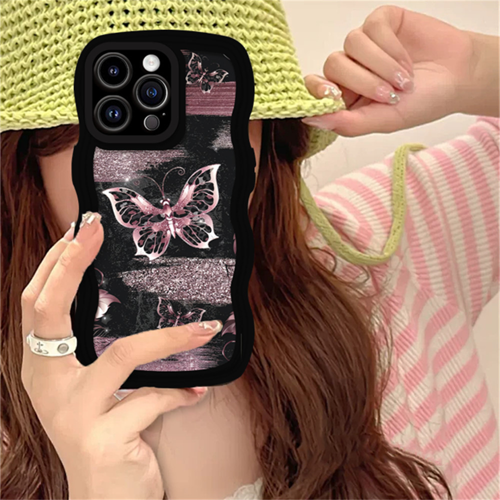 Casing hp iPhone 15 Pro Max iPhone 11 12 14 13 Pro Max XR 7Plus X XS Max 6s 7 8 6 Plus SE 2020 Crystal Purple Butterfly Soft Case CASETIFLY