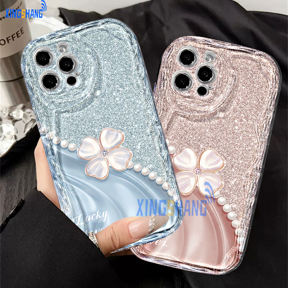 Casing hp iPhone 15 Pro Max iPhone 11 12 14 13 Pro Max XR 7Plus X XS Max 6s 7 8 6 Plus SE 2020 Sparkling Pearl Phone Case XingShang