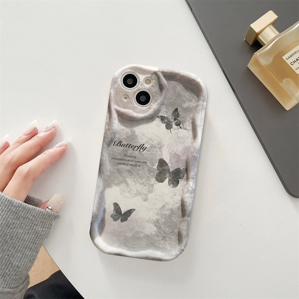 Casing hp iPhone 15 Pro Max iPhone 11 12 14 13 Pro Max XR 7Plus X XS Max 6s 7 8 6 Plus SE 2020 Vintage Butterfly 3D Soft Wave Edge TPU Phone Case Cover SUNSHINE