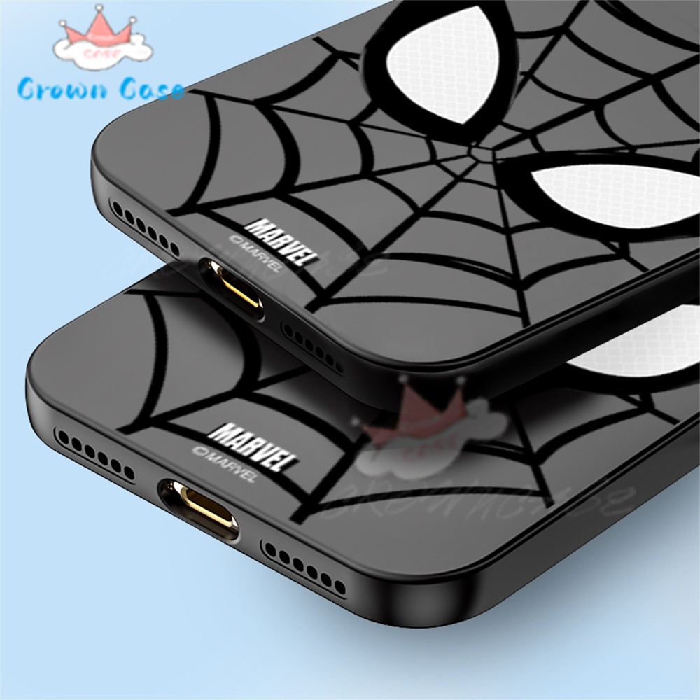 Casing hp iPhone 7 8 6 6S Plus X XS XR Max 14 Pro Max 14Plus 13Pro Max iPhone12 11 Pro Max Square Trend Spider Man Mask Minimalist Creativity Case Cover Crown