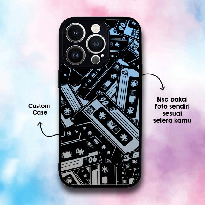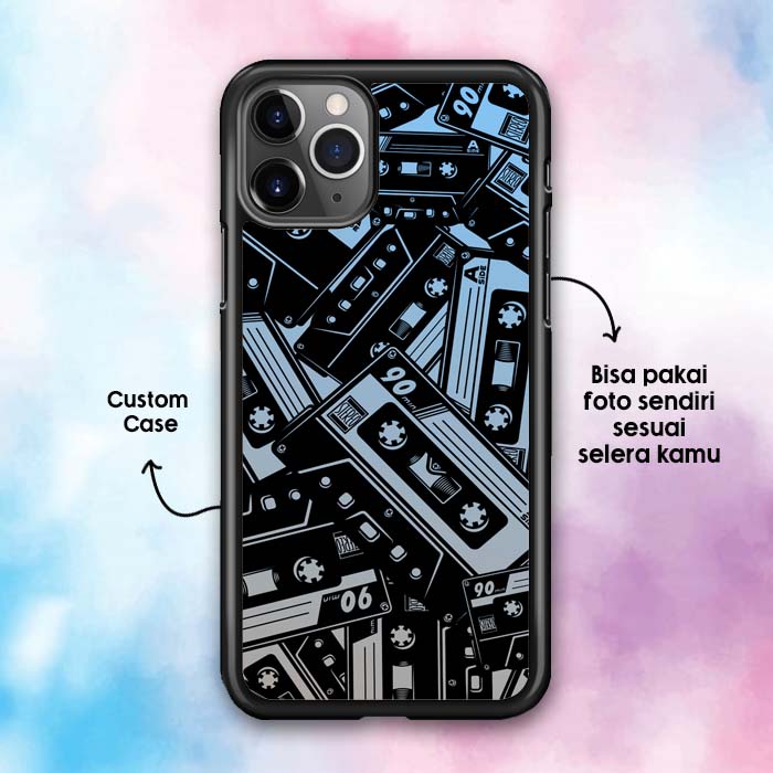 Casing iPhone 11, 11 Pro, 11 Pro Max, 12 Mini, 12, 12 Pro, 12 Pro Max, 13 Mini, 13, 13 Pro, 13 Pro Max, 14, 14 Pro, 14 Pro Max Black Cassette Tape COCF0005