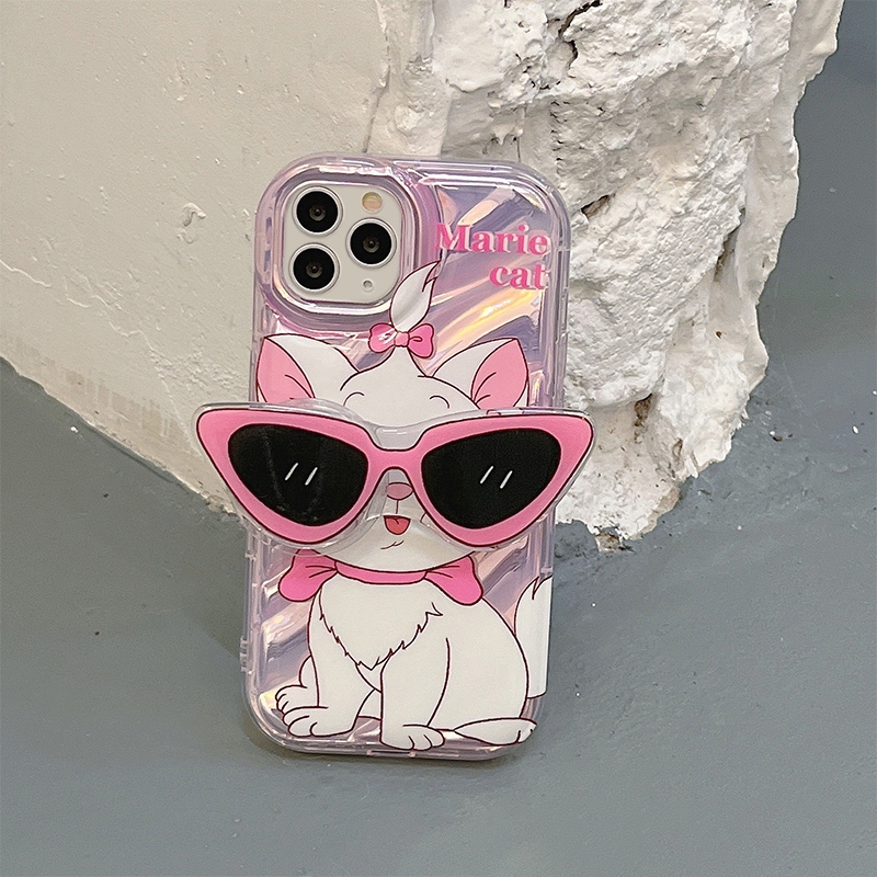 Casing iPhone Ponsel Lucu Dudukan Ponsel Niche Casing Ponsel Marie Cat Sunglasses Style Case Cocok untuk iPhone 11 13 XR 7Plus 8Plus 11Pro-FE