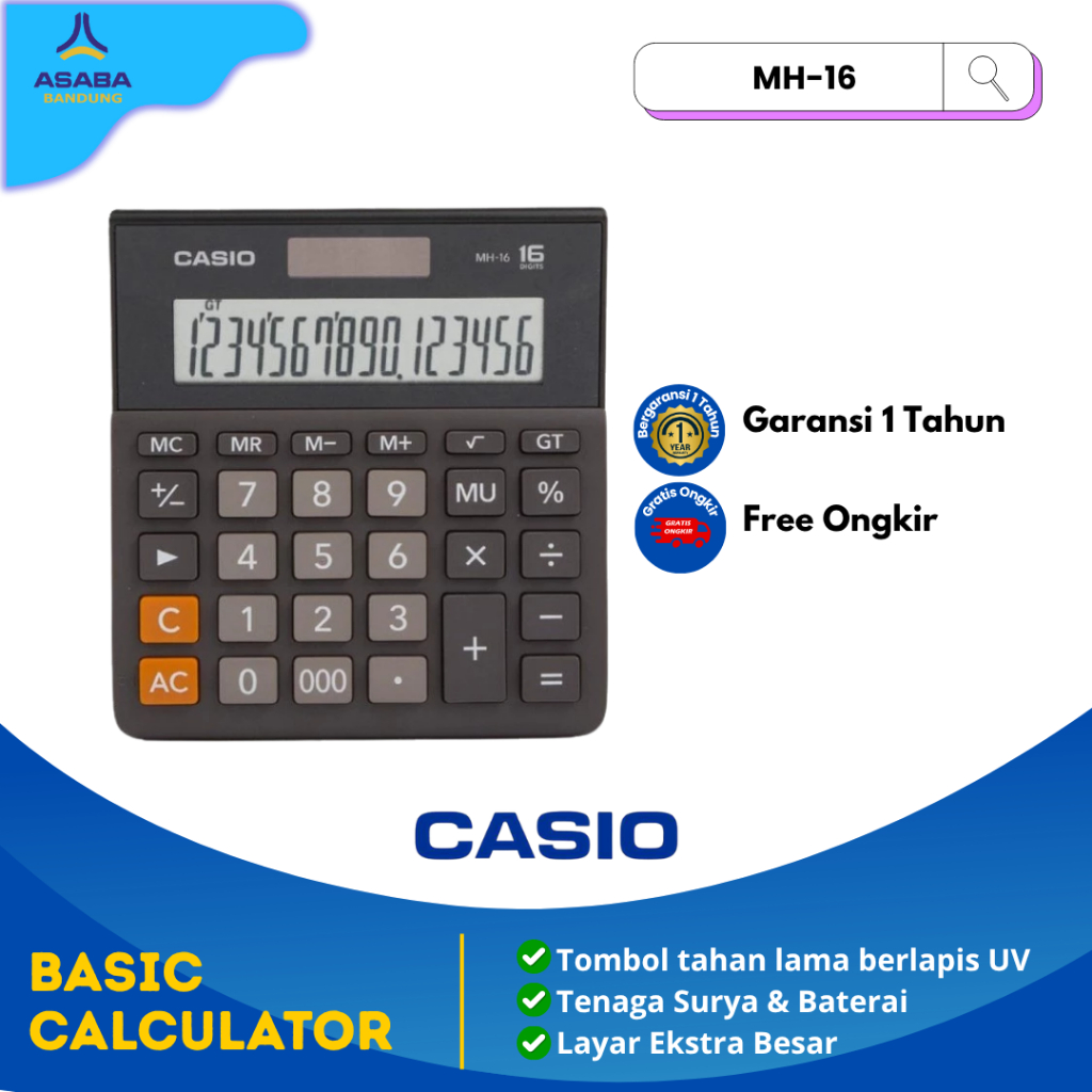 Asaba Bandung - Casio Calculator MH-16 - Hitam Kalkulator Kantor - 16 digit
