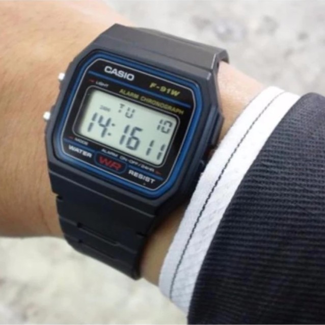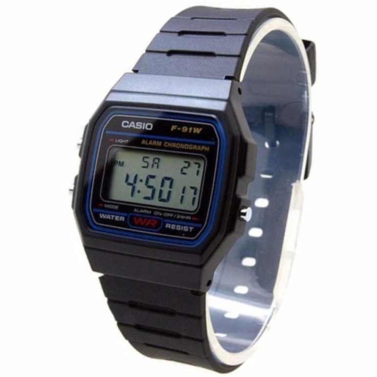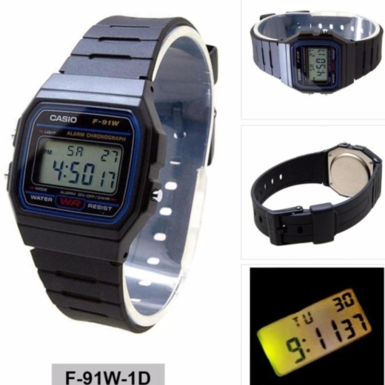 Casio General F-91W-1D / F-91W-3D / F91W-1DG / F91WG-9Q Jam Tangan Pria Digital Karet Hitam