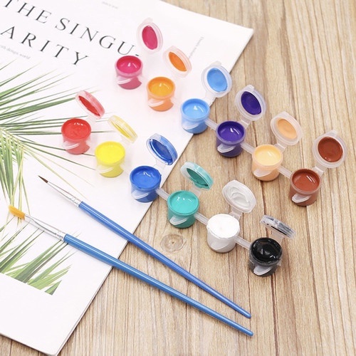 Cat Air Paint Watercolor Cat Minyak 12 Warna Peralatan Alat Lukis Cat Air/Cat Air Paint Watercolor Cet Minyak Peralatan Alat Lukis Palet Kuas Kanvas Paintbrush Painting Brush Canvas Art Acrylic Akrilik Warna