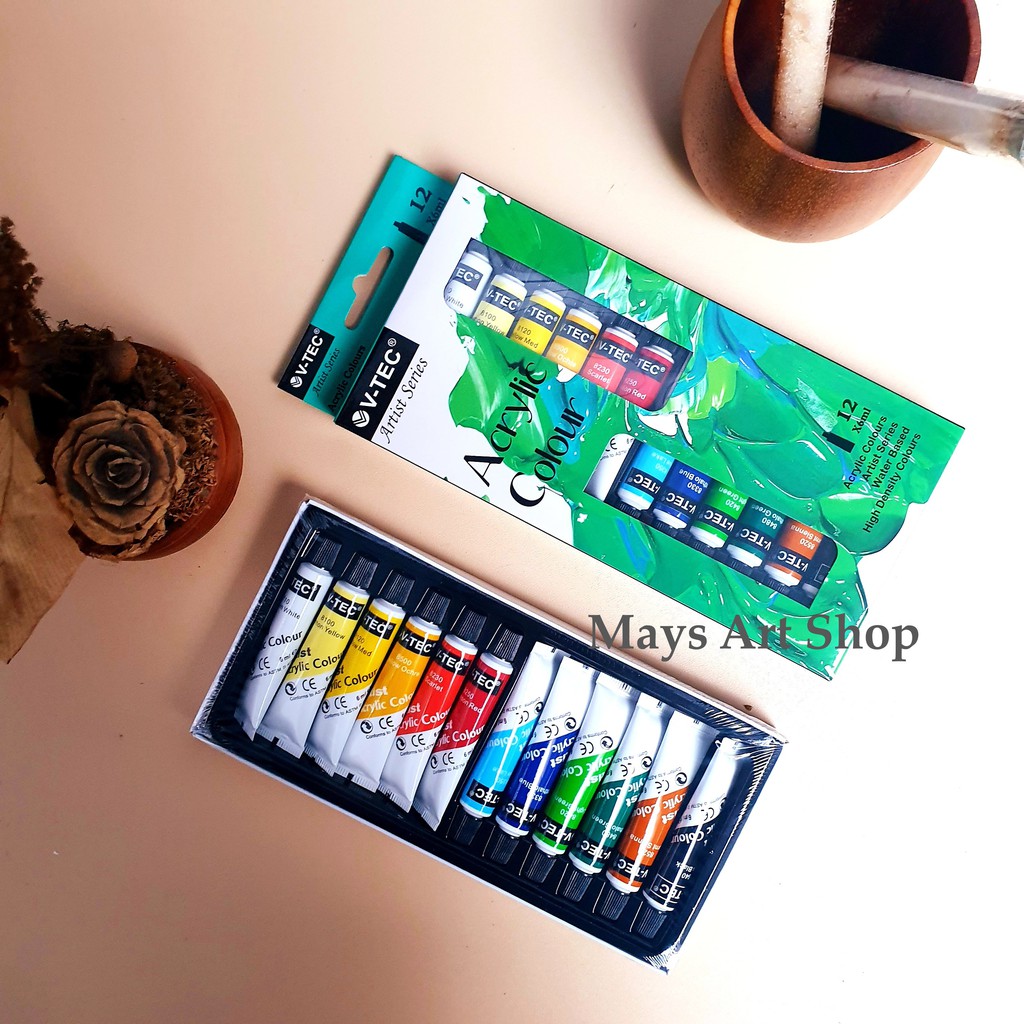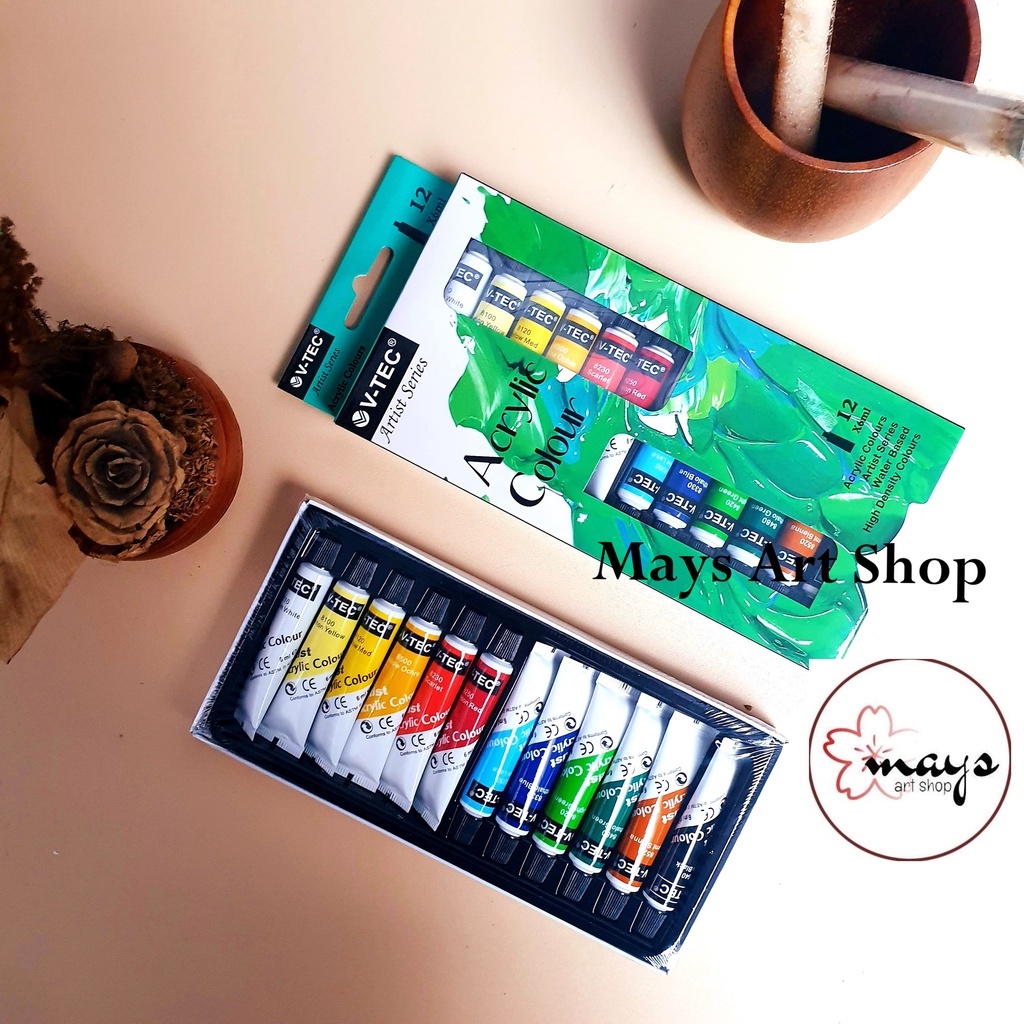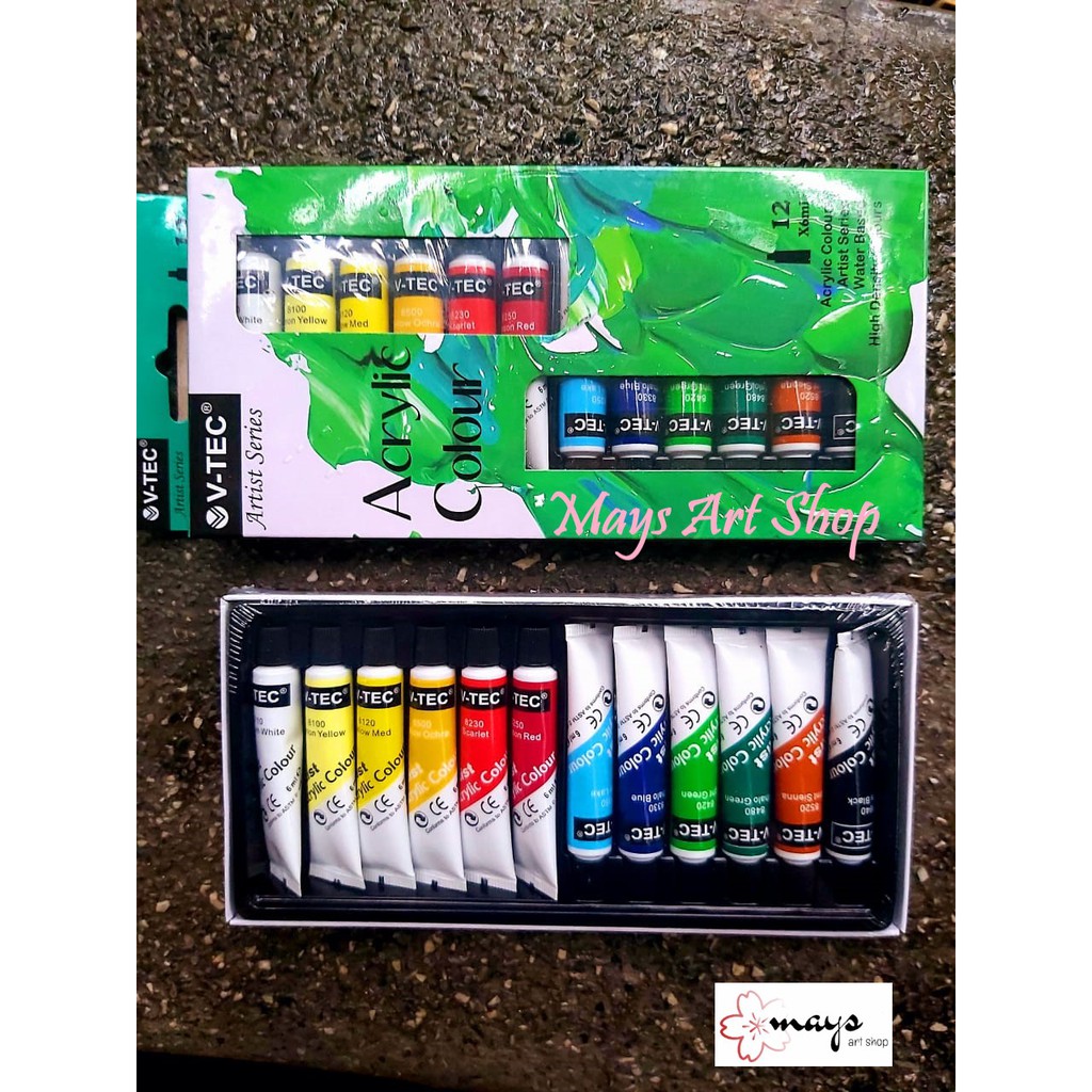 Cat Akrilik Set 18 Warna V-Tec / Cat Lukis Kanvas - Acrylic Paint Color V Tec 6ml / Acrilic Colour 18x6 ml - 12 x 6 ml Vtec