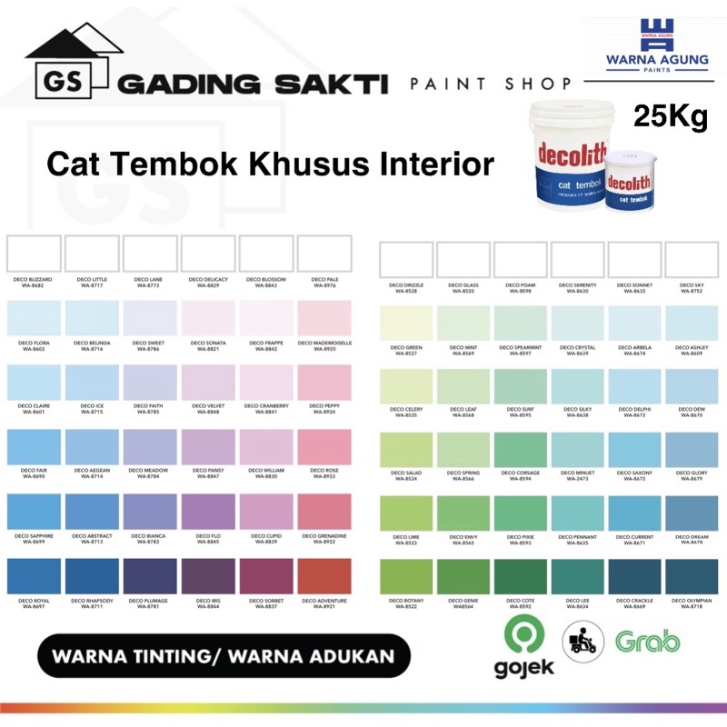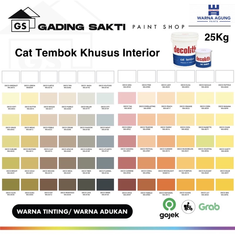 Cat Decolith (Khusus Warna Tinting / Adukan) / Cat Tembok Khusus Interior Ukuran Pail 25Kg