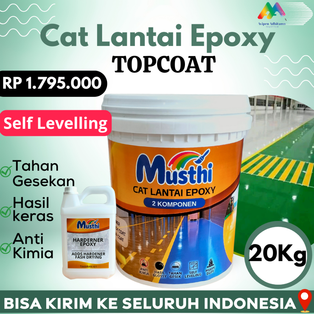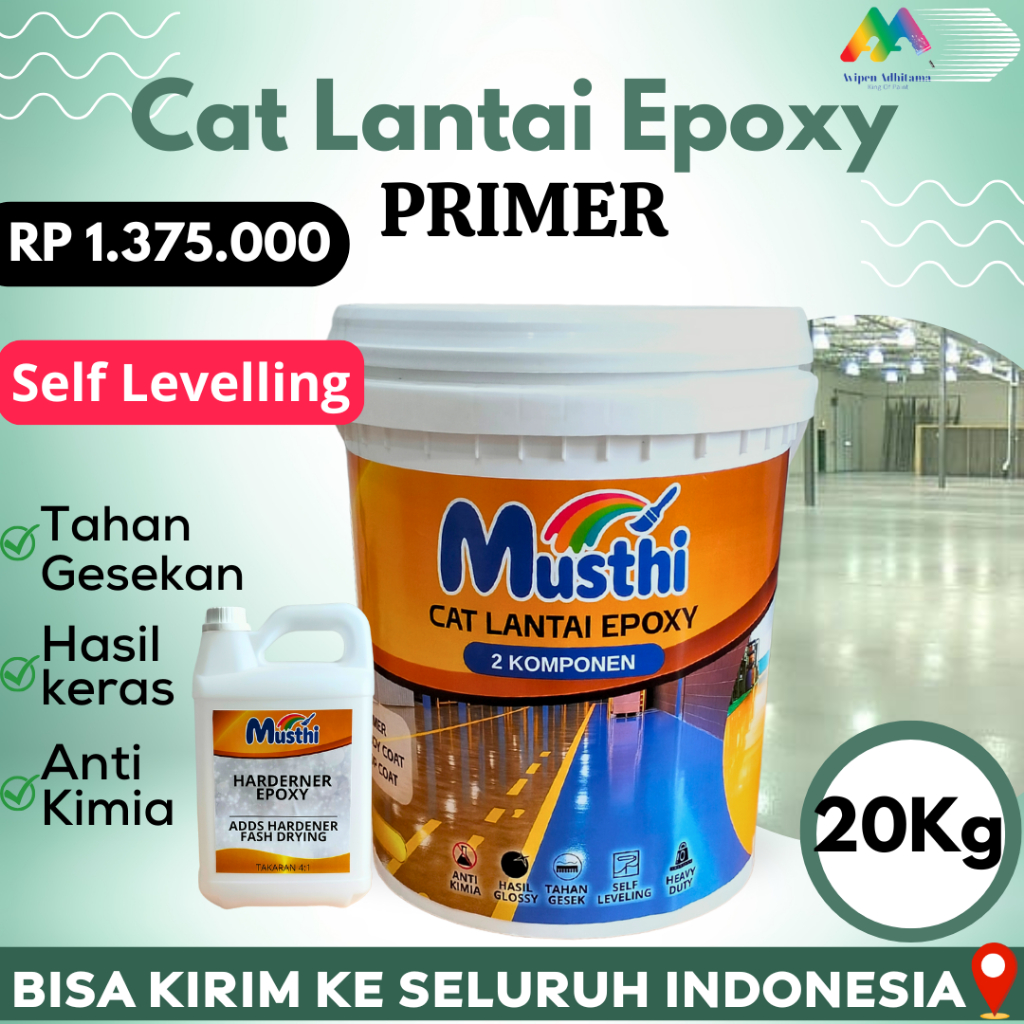 Cat Lantai Epoxy Primer BodyCoat TopCoat Mengkilap Musthi Pox 20 Kg utk Beton Keramik Semen