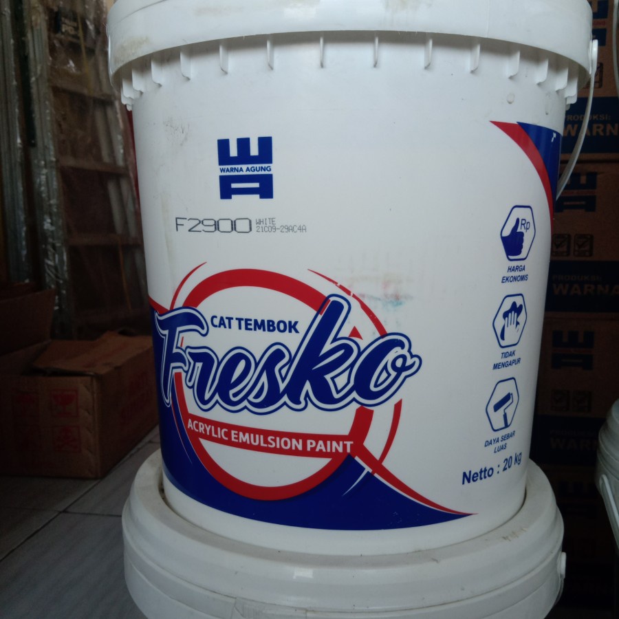 Cat Tembok Fresko Fresco 20 kg Catt Cet Dinding Warna Putih Plafon Plapon Pelafon Pelapon Wall Paint Wal Pen Interior Dalam Rumah Ruangan Atap Langit Pelapis Plapis Lapisan Warna Agung 20Kg Liter 20L Ltr Presko Peresko Presco White