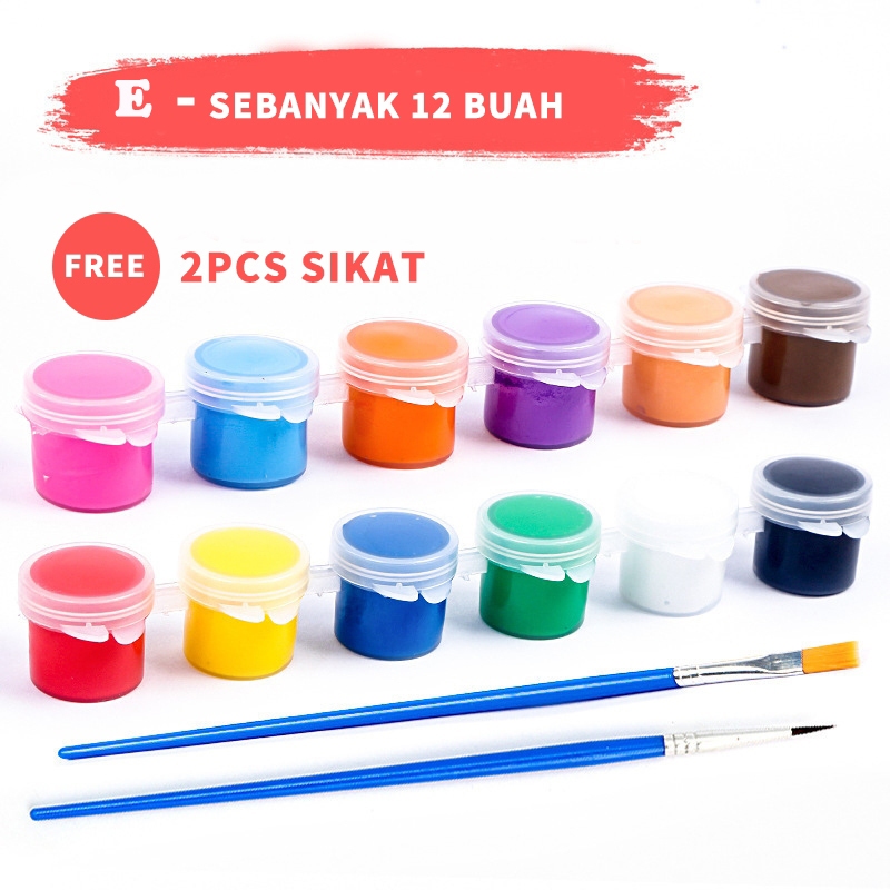 Cat akrilik Set 6 Warna 12 Warna/Cat Akrilik Kanvas Lukisan Kanvas Cat Cat Akrilik 3ml + Dua pulpen-THIMPLE