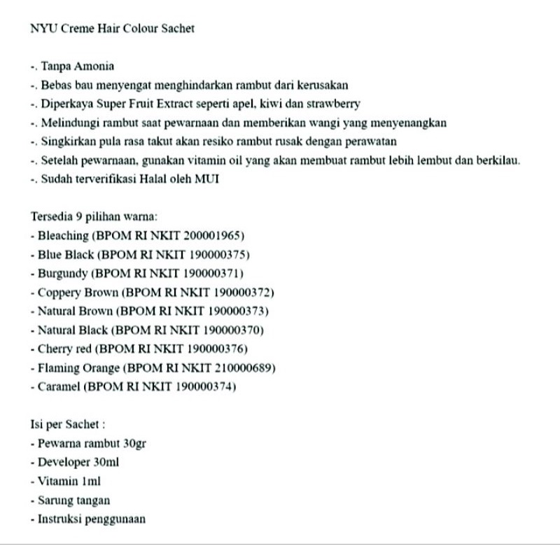 Cat rambut nyu Cream hair colour Sachet/Nyu Sachet