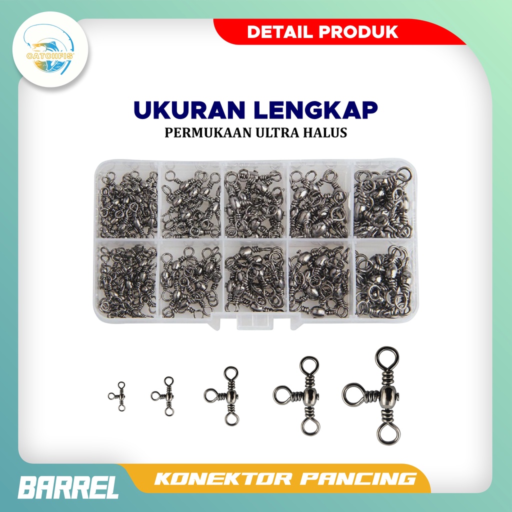 Catchfis - KiliKili Barrel Swivel 3 Mata 3 Way Swivel Rangkaian Pancing Solid Ring Brass 3 Way Barrel Swivel Untuk Rangkaian Pancing Barrel 3 Way Fishing Swivel Solid Ring Brass Hook Line Connector