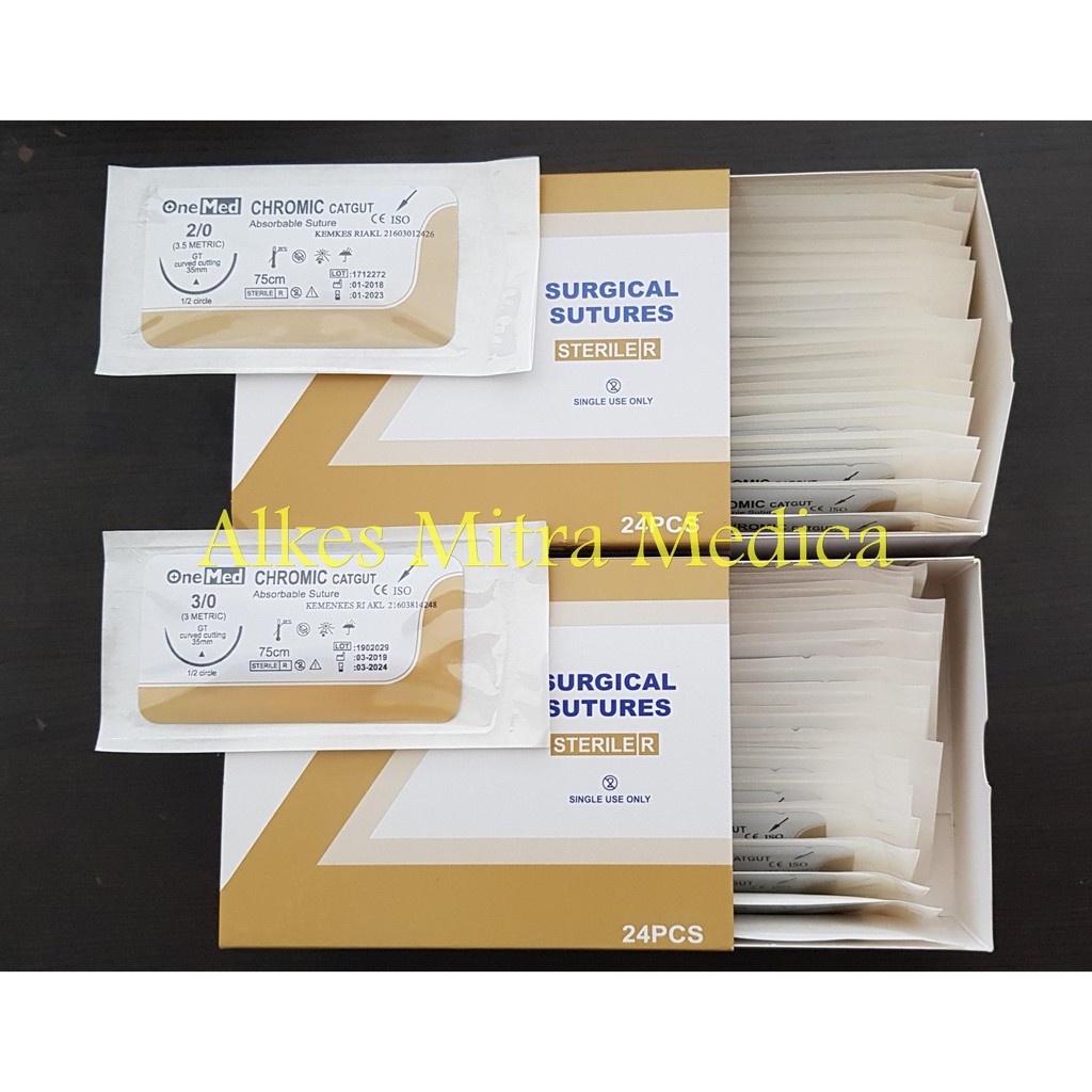 Catgut Chromic Onemed + Jarum - Benang Jahit Operasi - Surgical Sutures