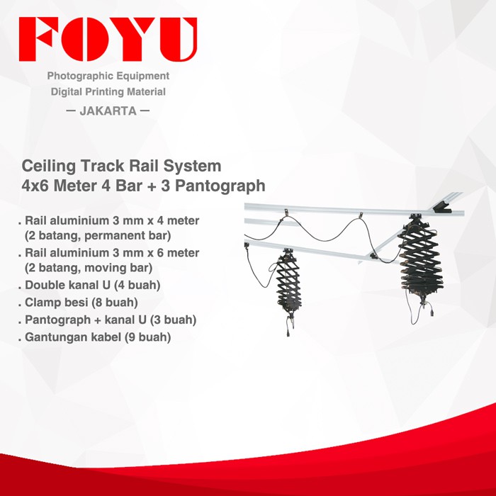 Ceiling Track Rail System Komplit 4x6 Meter 4 Bar dan 3 Pantograph