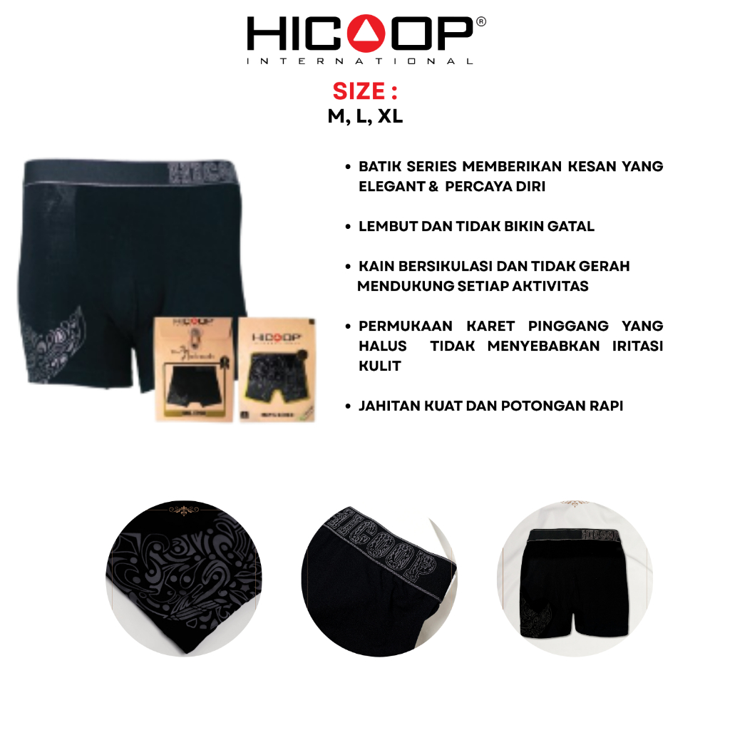 Hicoop - Underwear Boxer - Celana Dalam Pria Boxer Motif Batik - Hitam - 1 Pcs - HXKL-ST108