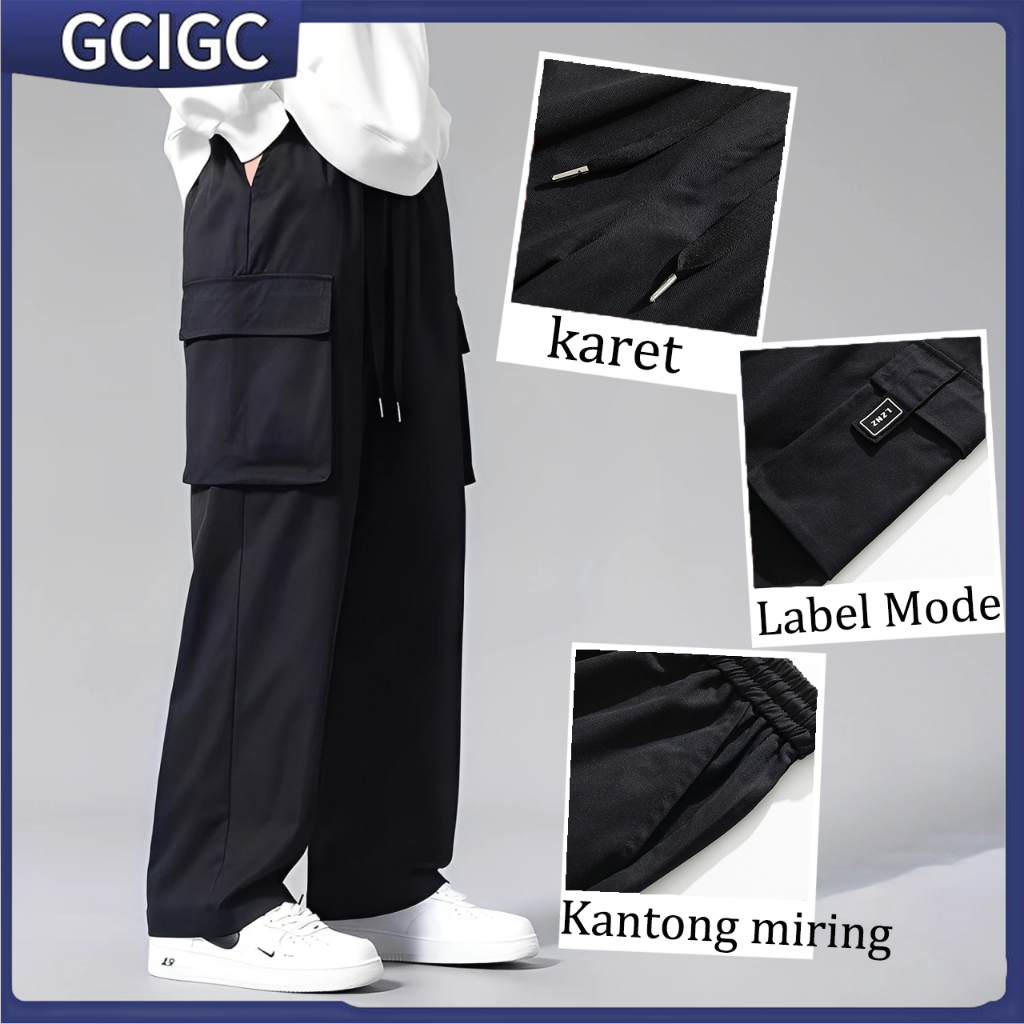 Celana Cargo Panjang Pria Hitam Cargo Pants Oversize Celana Kargo Elastis Pants Celana Joger Pria