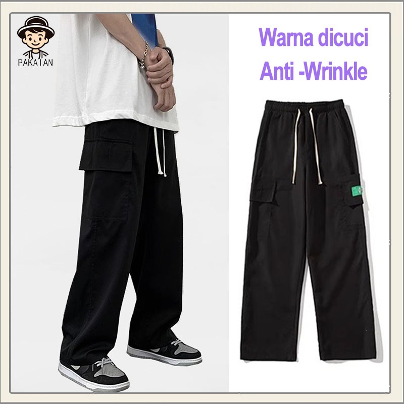 Celana Cargo Panjang Pria Oversize Korean Style Khaki Jumbo Celana Kargo Longgar Baggy Pants Cargo Hypebeast Fashion Korea Import Ootd Pria Style