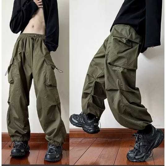 Celana Cargo Panjang Pria Tali Serut Highwaist Korean Stail