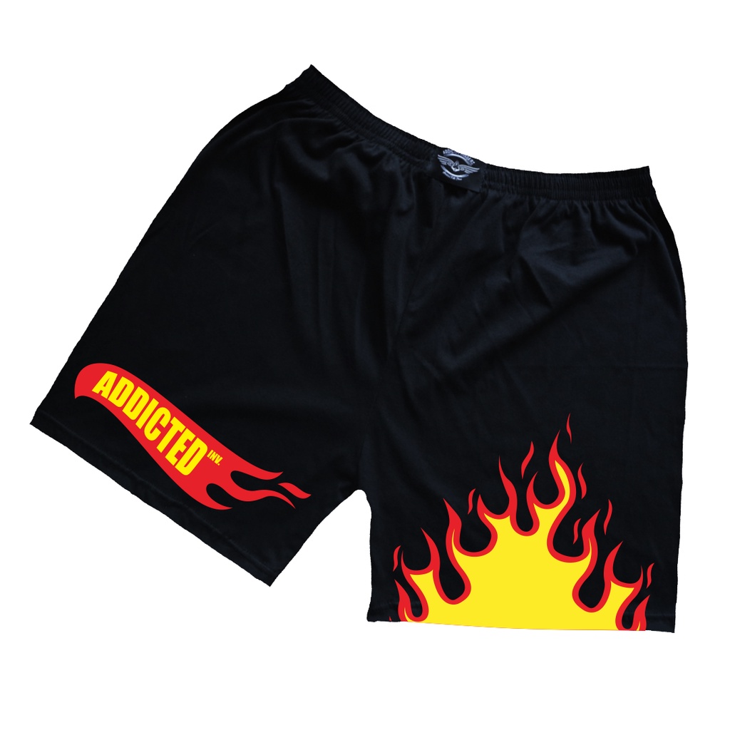 Celana Pendek Boxer Kolor Motif Sablon Api Flame Pria Wanita Dewasa Unisex Addicted Invaders