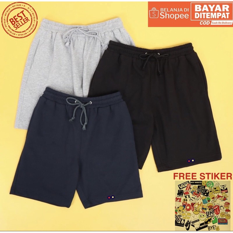 Celana Pendek Pria Santai Sweatpants Original Full Katun Realpict