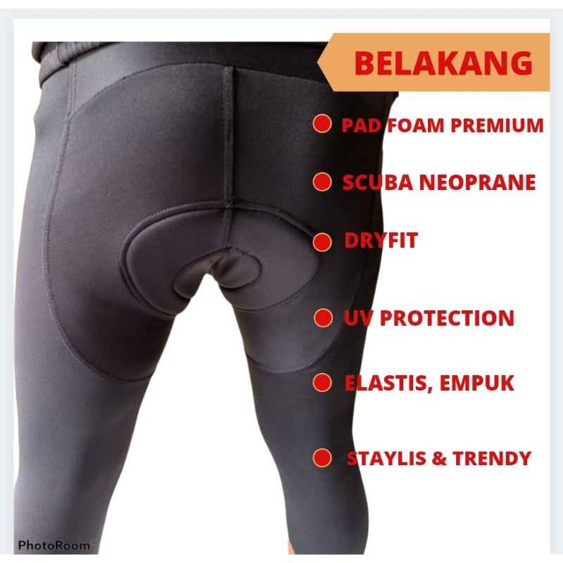 Celana Sepeda Roadbike panjang Black Coated Celana sepeda ketat panjang pading busa