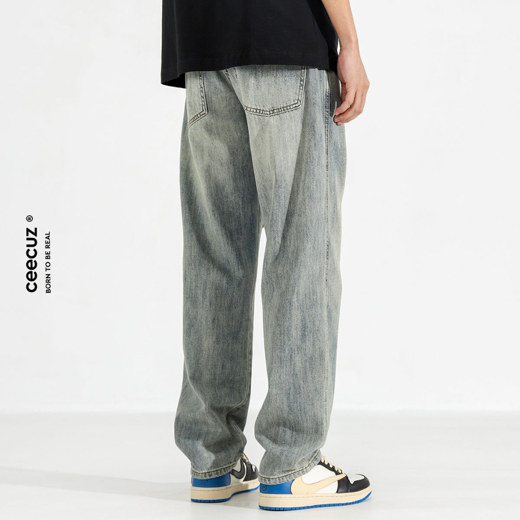 Celana jeans korean style pria dewasa gombrang cowok Retro biru muda denim sobek keren dewasa terbaru