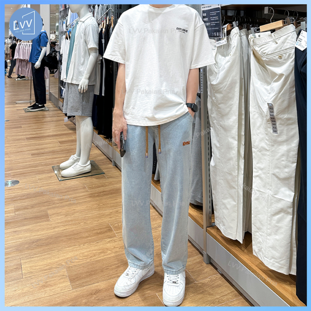 Celana jeans pria celana pria korean style baggy pants pria straight jeans kulot celana gombrong cowok celana panjang jeans pria biru muda celana skena pria celana oversize pria