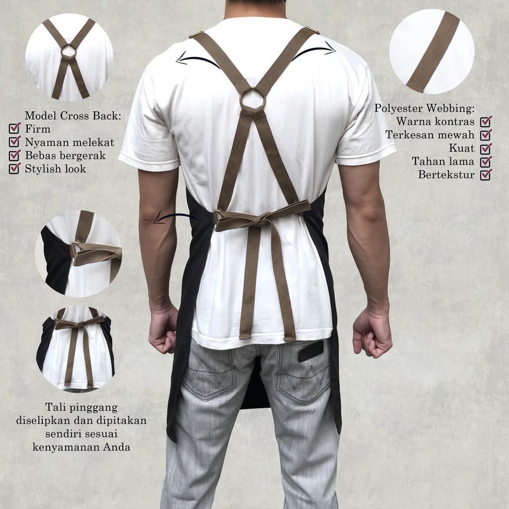 Celemek Apron Barista - Tali Silang - Drill - Cafe - Barbershop - Coffee Shop - Celemek Masak - DIY