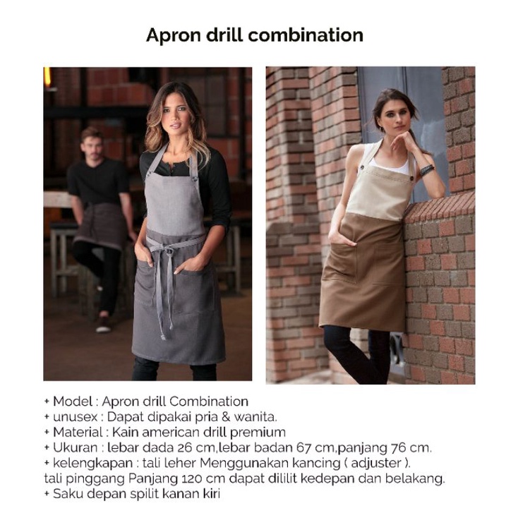 Celemek Apron Masak Celemek Kitchen Celemek Dapur Celemek Barista Bartender waitres - Abu, Cokla muda