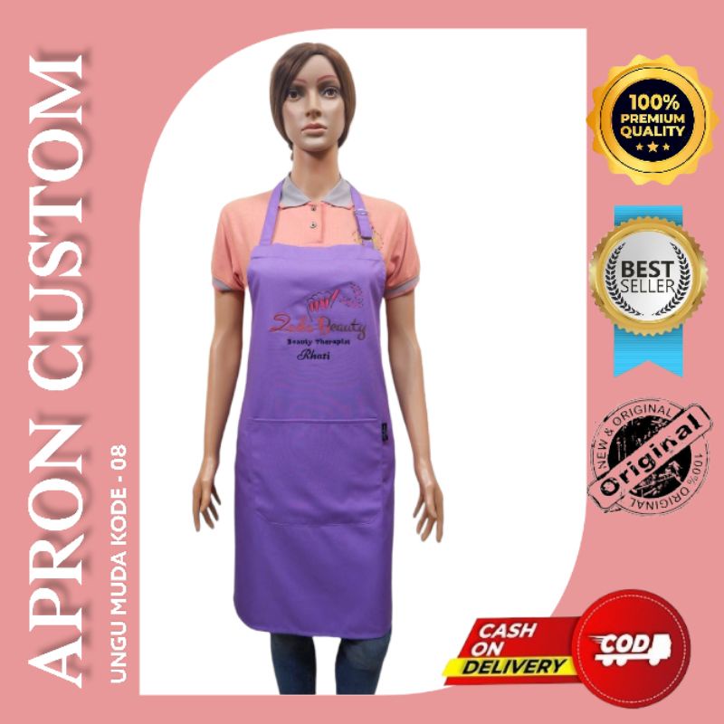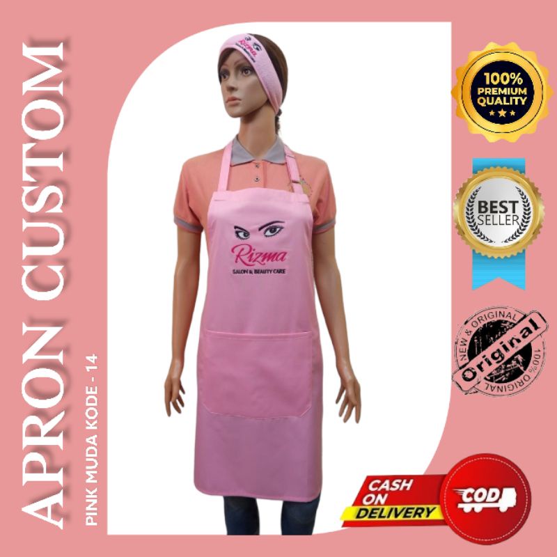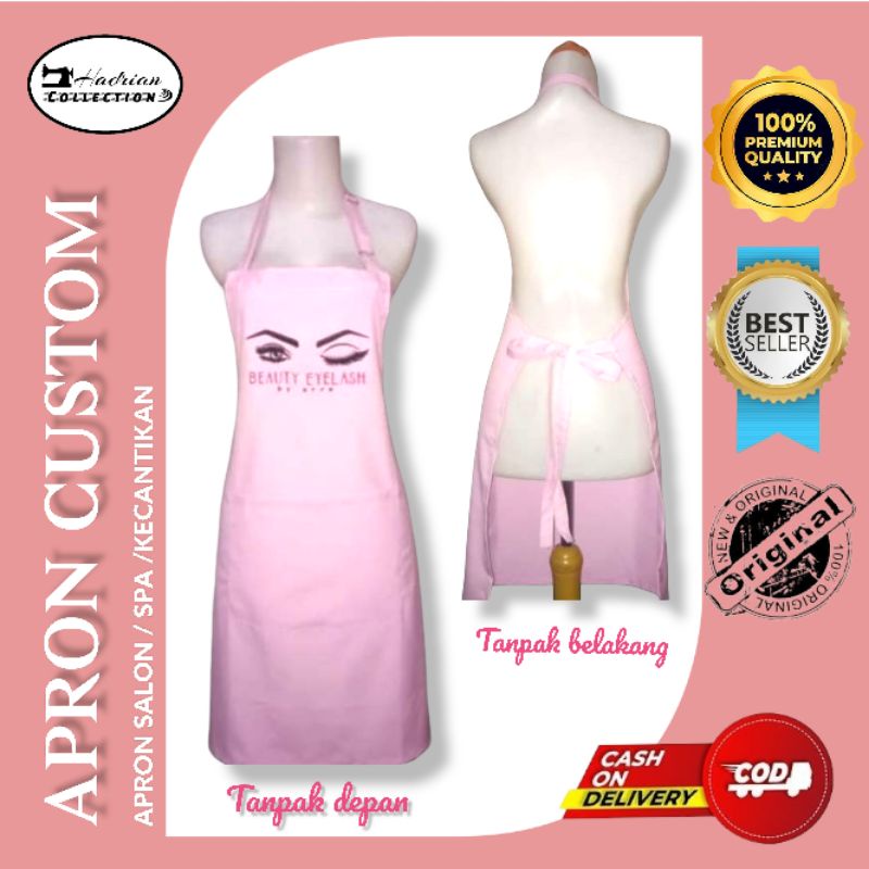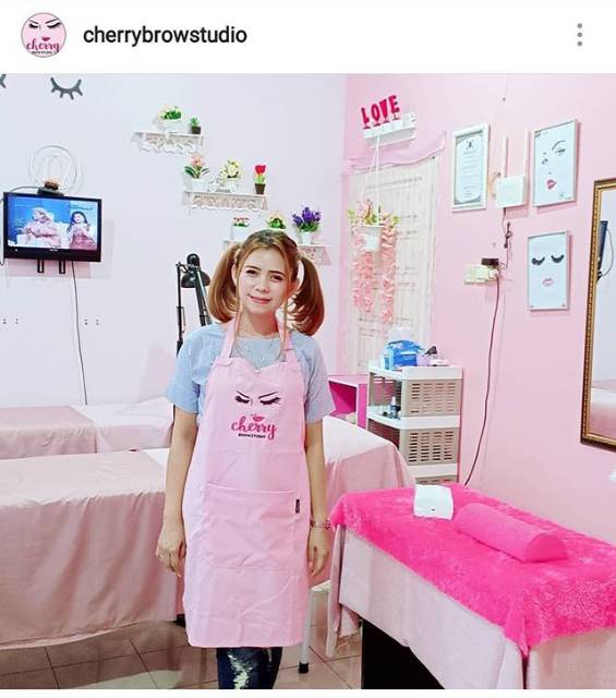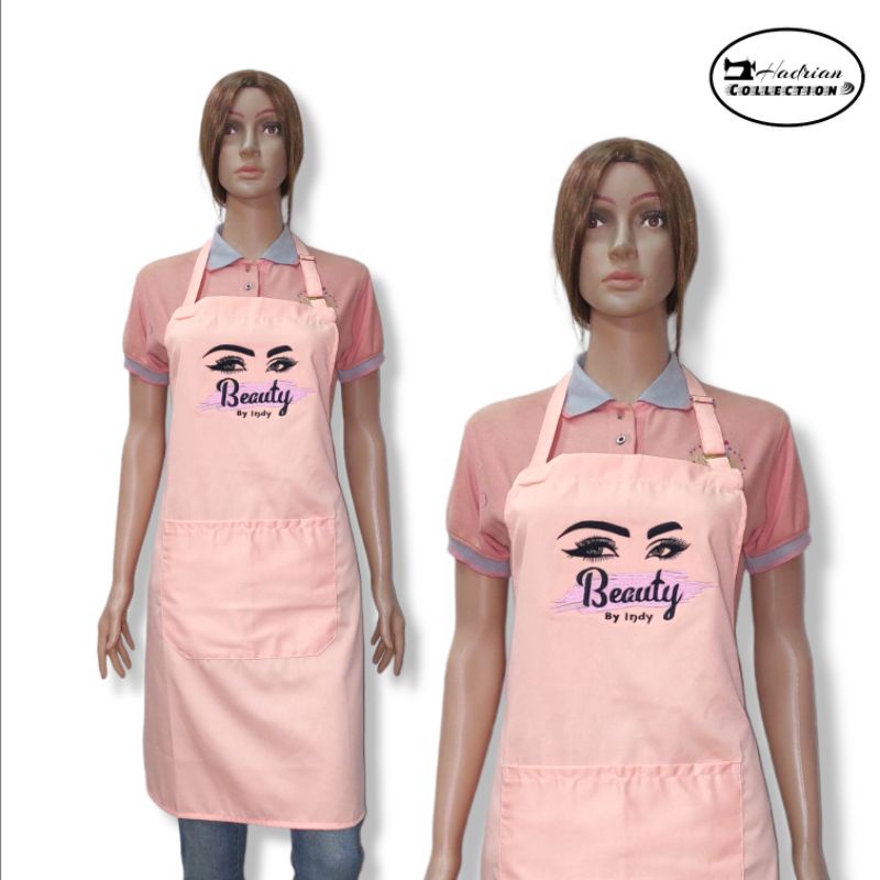 Celemek Apron Salon Cuztom pink Celemek Spa Celemek massage Celemek kecantikan free bordir logo salon