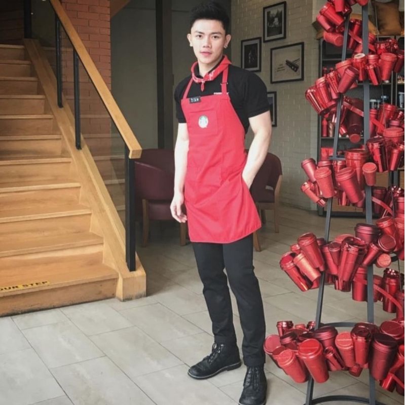Celemek apron Barista Celemek Waitres Celemek Bartender Celemek Salon Celemek kitchen apron Chef Celemek masak - Hijau starbuck - drill best quality premium