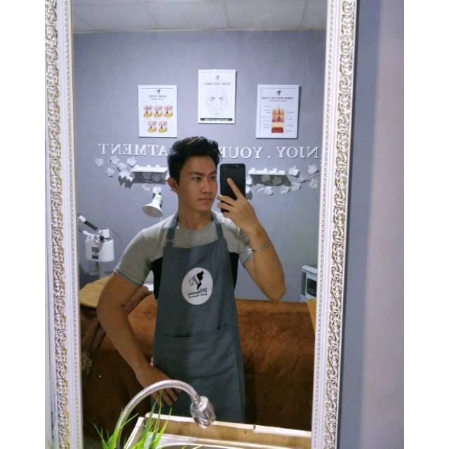Celemek apron basic abu,celemek masak,celemek dapur,celemek pria wanita,celemek waitres
