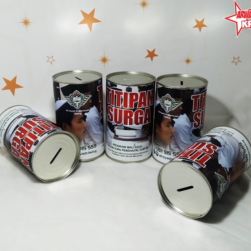 Celengan Kaleng Karakter Custom Buka Tutup Bawah / Kencleng Infaq / Celengan Sedekah