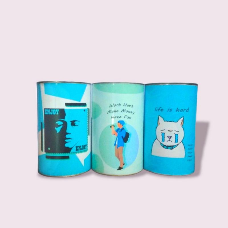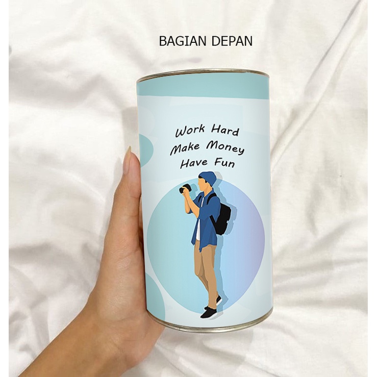 Celengan motivasi aesthetic murah - celengan unik buka tutup - celengan kaleng keren viral murah - celengan bahasa inggris keren