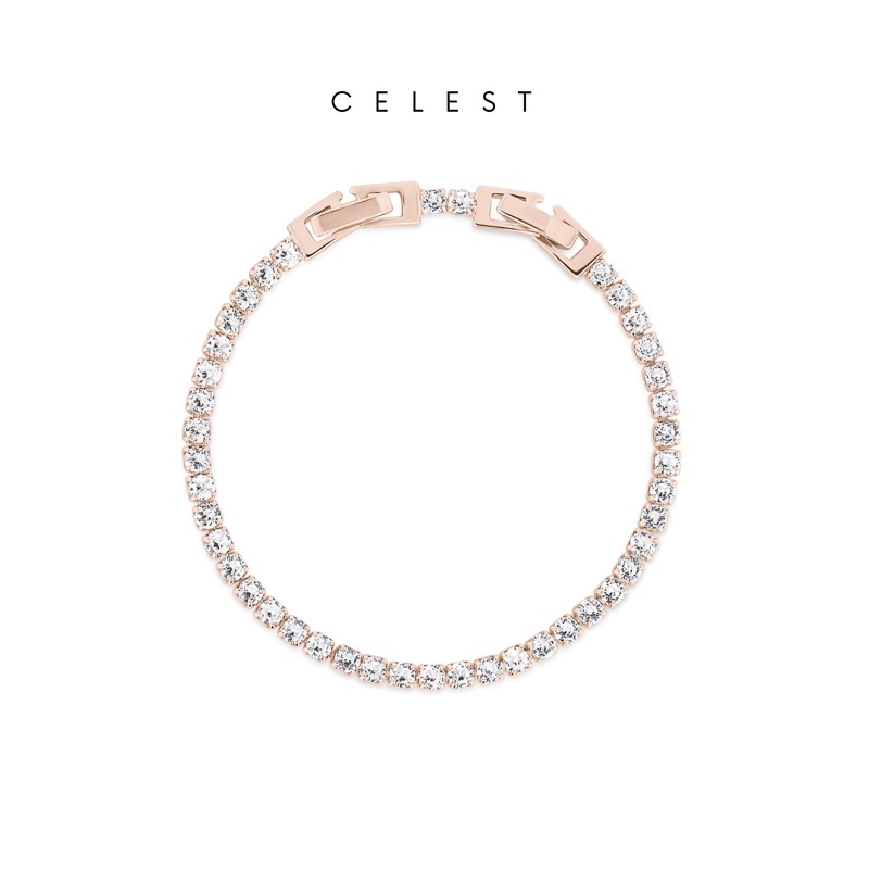 Celest - Eternal Rose Gold Tennis Bracelet Jewelry (Adjustable) | Gelang Emas Asli 18K Bersertifikat | Perhiasan Lapis Emas 18 Karat Gold Plated | Kado Aksesoris Pernikahan Anniversary Ulang Tahun | Gift Box Mewah
