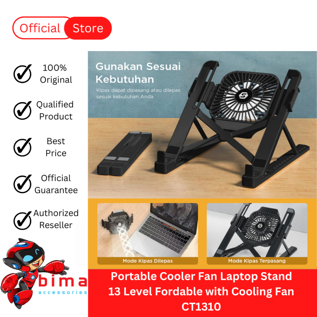 Centechia Laptop Stand Cooler Portable Fordable 13 Level with Cooling Pad Fan Kipas Pendingin CT1310