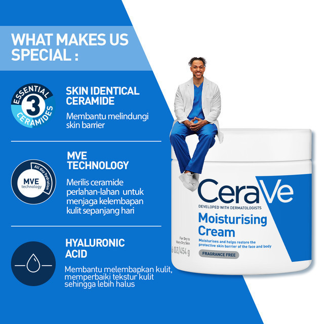 CeraVe Moisturising Cream 454g - Skin Barrier Repair Moisturizer with Ceramide for Dry to Very Dry Skin [Pelembap untuk Kulit Kering hingga Sangat Kering]