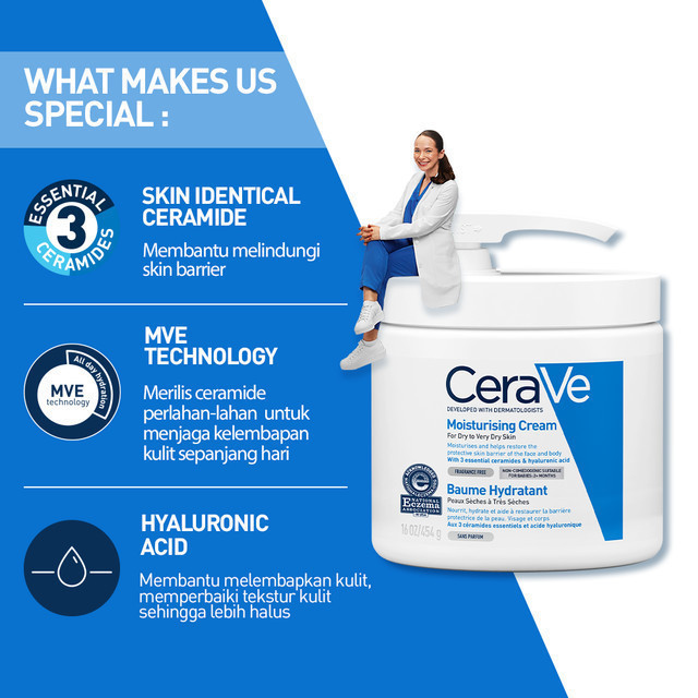 CeraVe Moisturising Cream 454g with Pump - Skin Barrier Repair Moisturizer with Ceramide for Dry to Very Dry Skin [Pelembap untuk Kulit Kering hingga Sangat Kering]