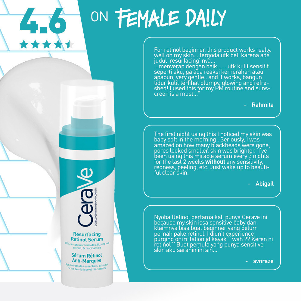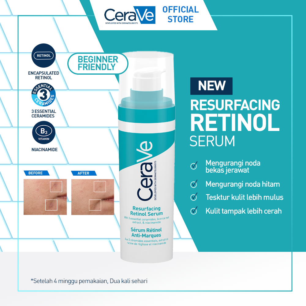 CeraVe Resurfacing Retinol Serum 30 ML - Gentle Retinol Serum for Acne-Prone Skin. Mengurangi Noda Hitam Bekas Jerawat, Menjaga Skin Barrier, Tekstur Kulit Lebih Mulus, Tampak Lebih Cerah (Retinol, Ceramides, Niacinamide)