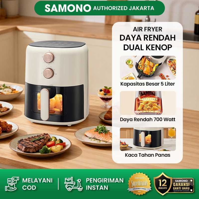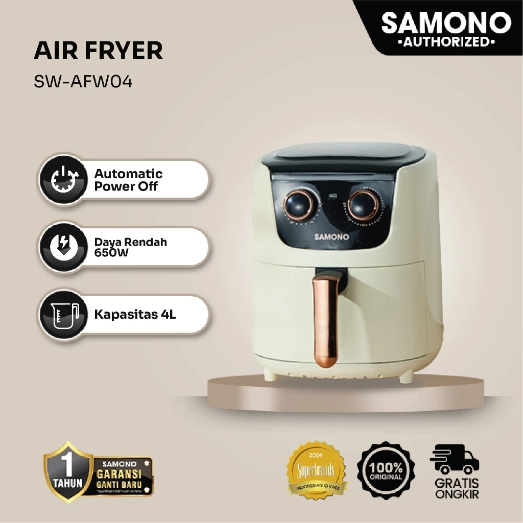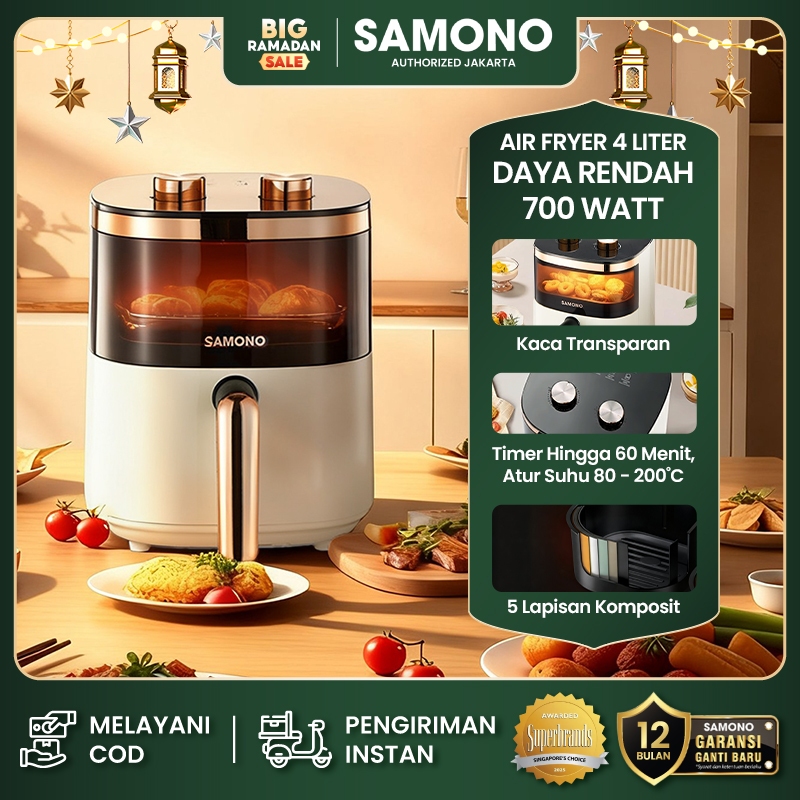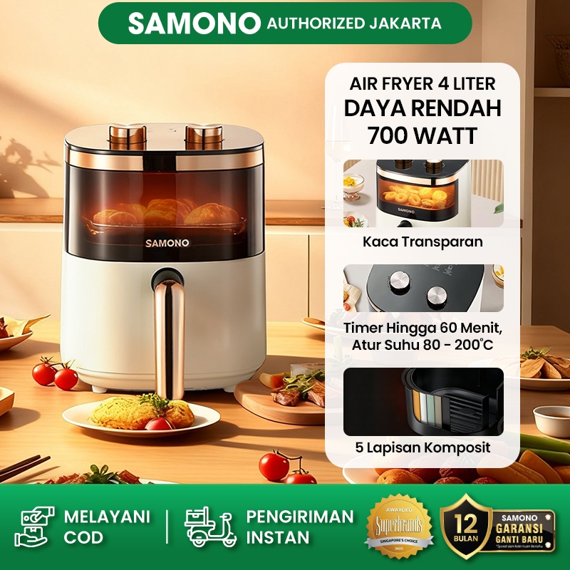 SAMONO Air Fryer Estetik Transparan 4 Liter Air fryer LOW WATT 700 Watt SNI Menggoreng Tanpa Minyak AirFryer Pemanas Kado Pernikahan GARANSI RESMI 1 TAHUN SAMONO OFFICAL - SW-AFW04S
