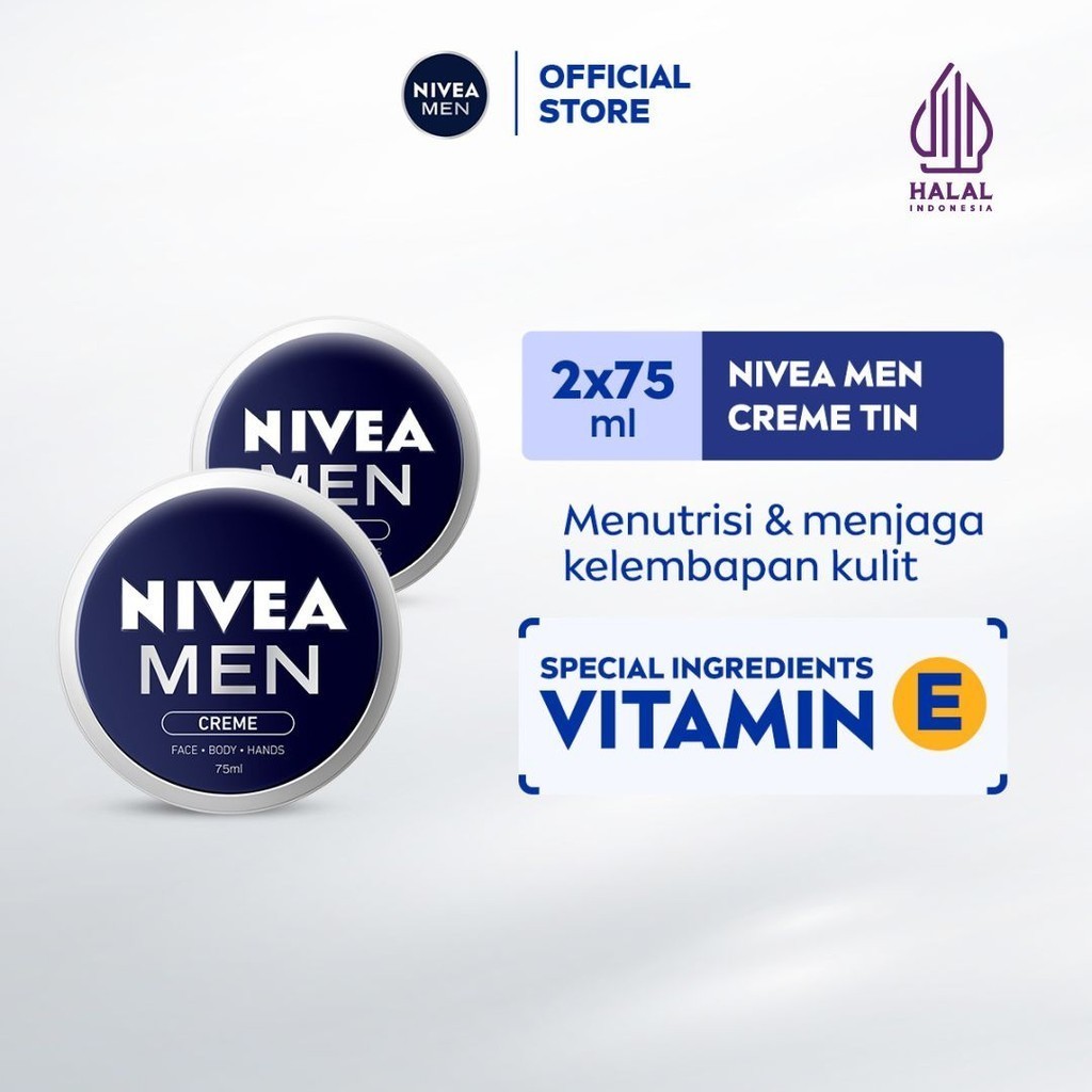 (PAKET HEMAT ISI 2) NIVEA MEN Cream Moisturizer Creme Tin 75ml - Hand body krim pria cream mositurizer multifungsi kaleng biru tua kulit kering kasar bersisik pecah-pecah sikut tumit memperbaiki skin barrier lembap wangi - Vitamin E, UVA UVB Filter