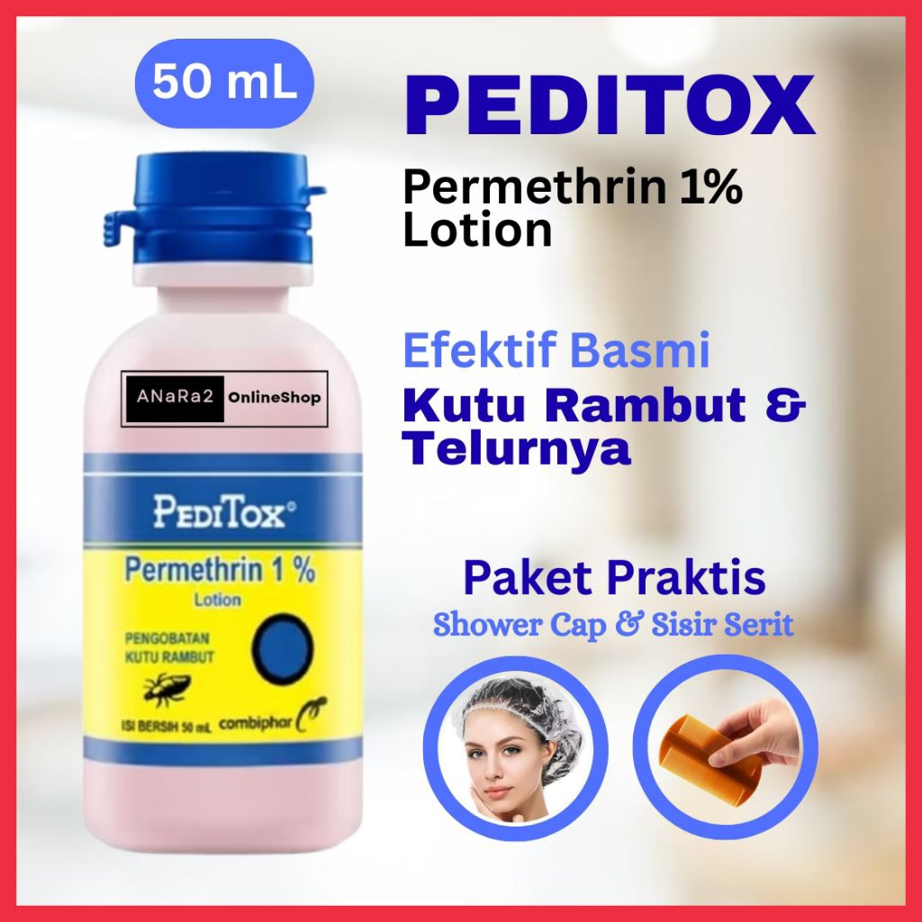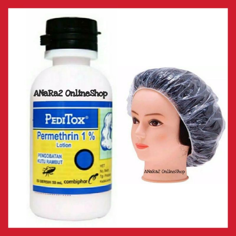 Peditox Lotion 50 mL Pembasmi Kutu Rambut Telur Kutu Anak Dewasa Sisir Serit Plastik Shower Cap
