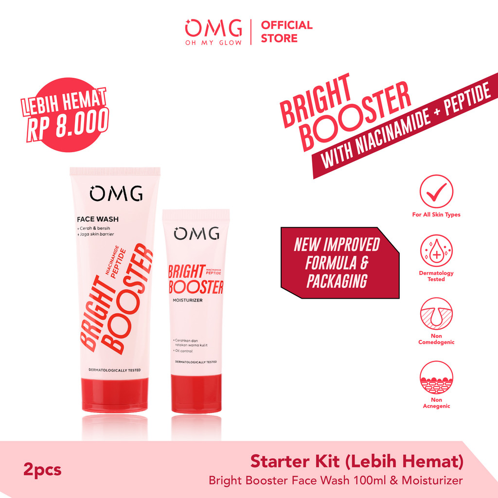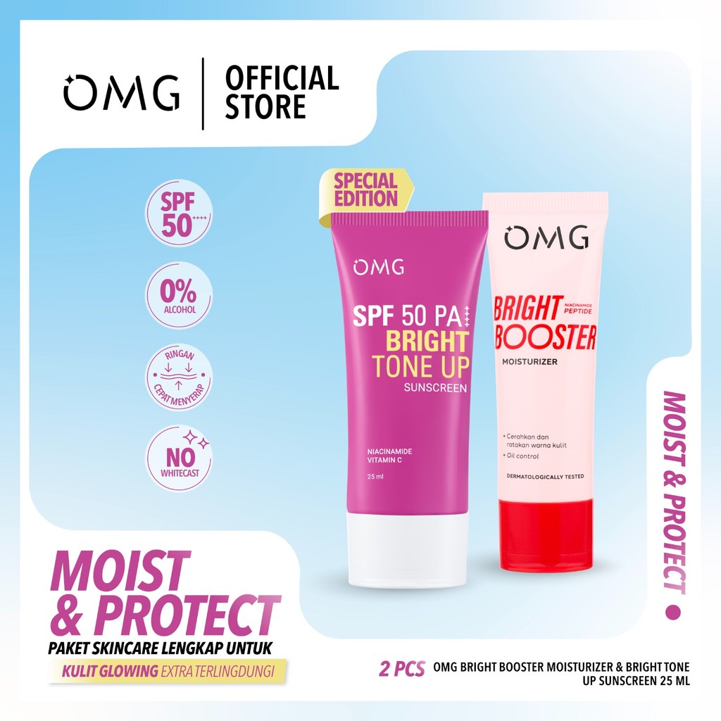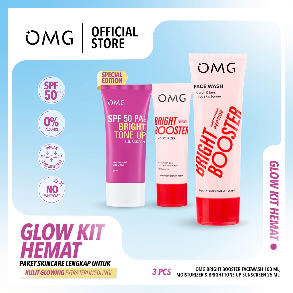 [BEST SELLER BUNDLE!] OMG Bright Booster Glow Kit - Paket Tone Up (Facewash, Moisturizer, Sunscreen) - Kulit Tampak Glowing