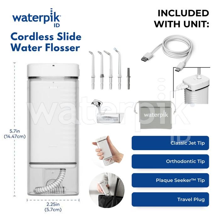 Waterpik Cordless Slide Water Flosser WF-17 Pembersih Gigi Portable