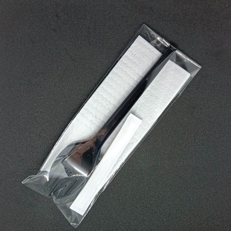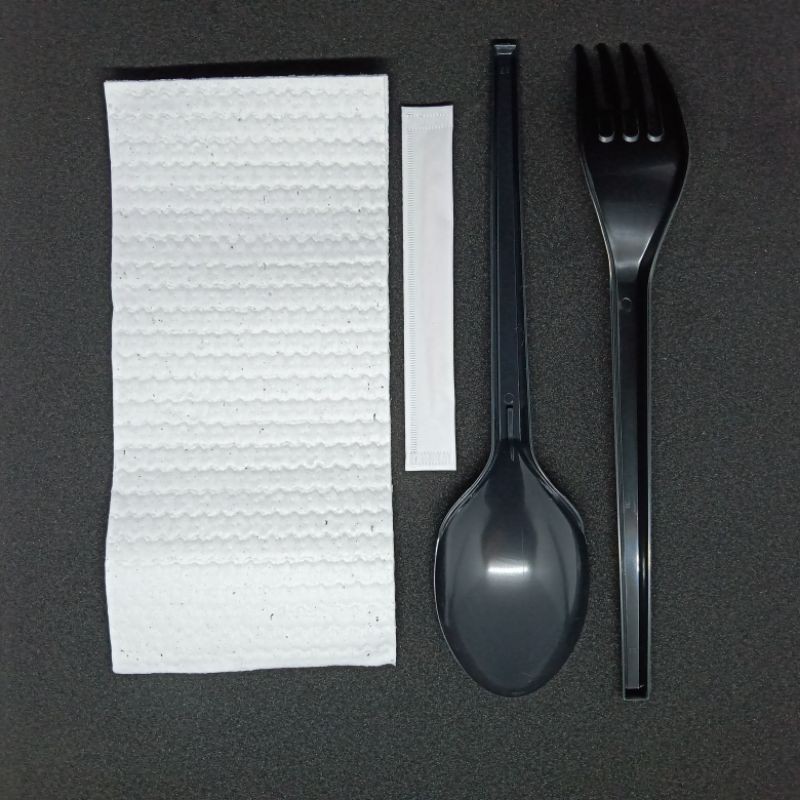 Catering Set / Paket Sendok Garpu Makan Plastik Set (Sendok Garpu Panjang Hitam PS)
